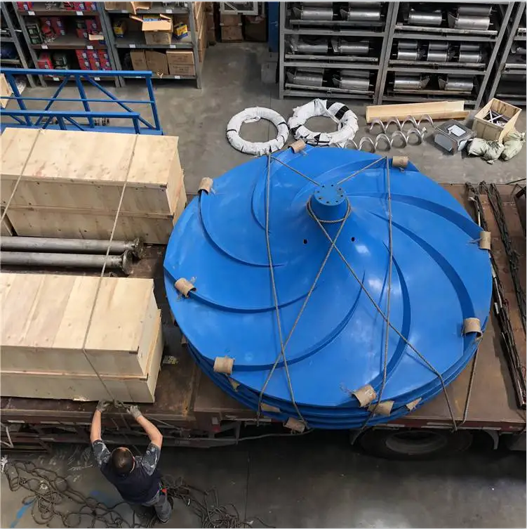 在有水的情況下先將軸和葉輪連接好放入水中,然后將軸與減速機連接。